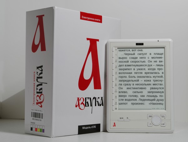 Азбука N516 – электронная книга вполне доступная по цене, сравнивая с аналогами. Имеет приятный, но простой дизайн. Дисплей ридера позволяет читать достаточно долго и не повлияет на ваше зрение. Гаджет может стать приятным подарком и мужчине и женщине, но в первую очередь, возможности устройства оценят студенты и любители чтения. Родиной Азбуки считается Украина.