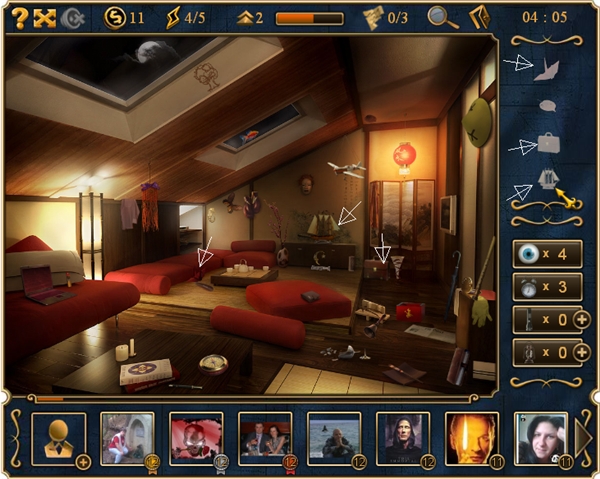 Немного о бонусах: они приобретаются в магазине и находят применение в комнатах. Существуют бонусы четырех разновидностей: это подсветка предмета при наведении на него, прибавочное время, подсказка предмета и преумножение ареала видимости фонаря или лупы.